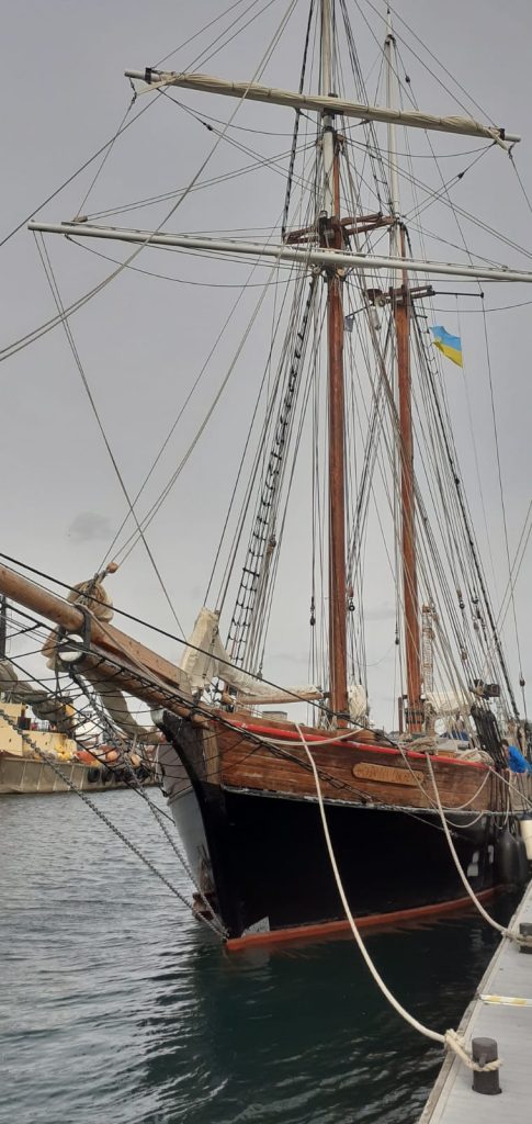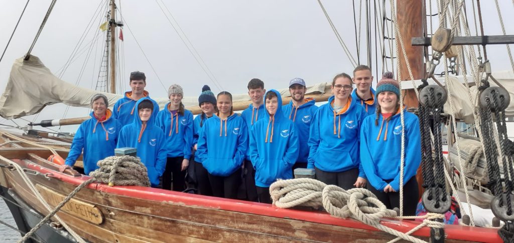 11 of WQSC’s young dinghy sailors and their leader, Sue Coomber boarded the Island Trust’s tall ship “Johanna Lucretia” yesterday at Plymouth Yacht Haven Marina.