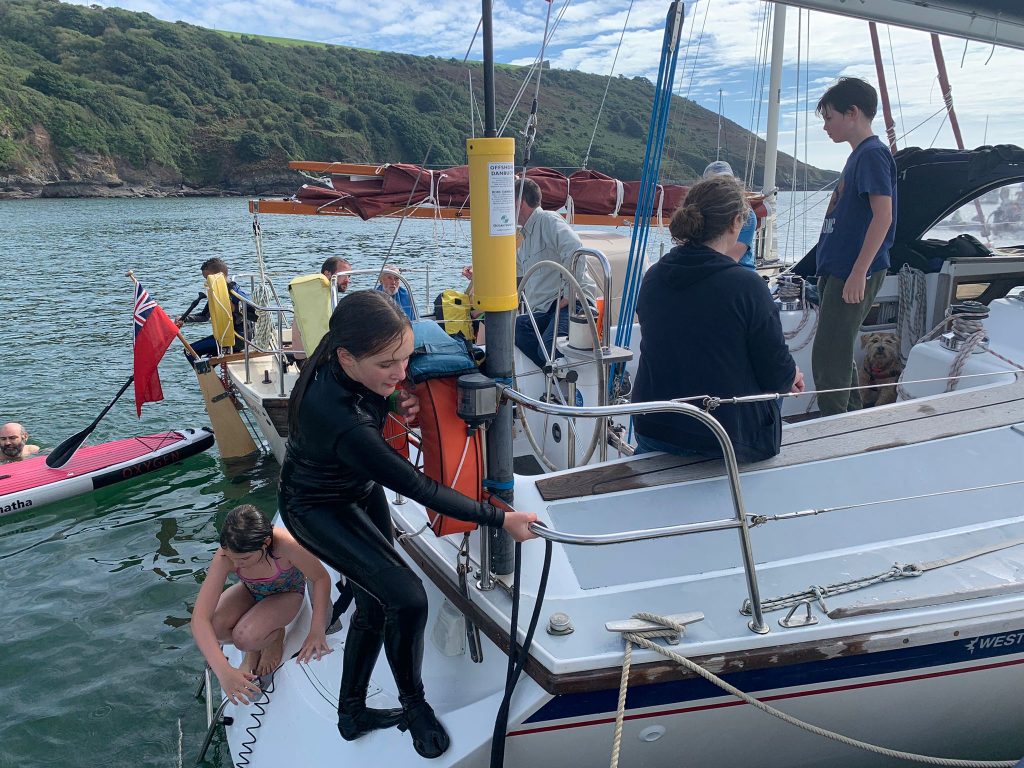 On Sunday 11th September nine cruisers from the club hosted groups of our dinghy sailors for a day sail from Weir Quay to Plymouth Sound, followed by rafting together in Jennycliff Bay for lunch and fun on the water.