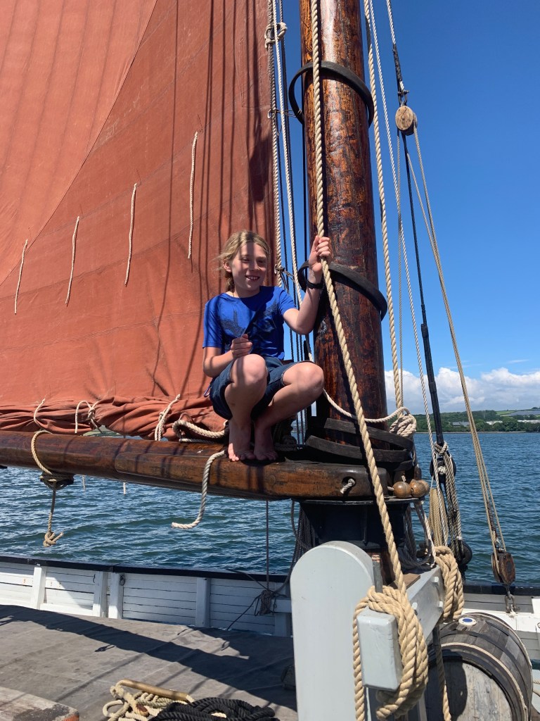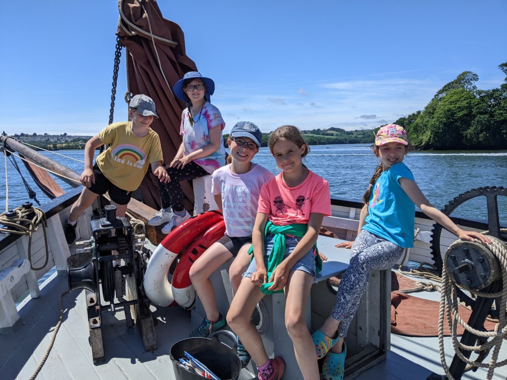 On Sunday 11th June, 10 of our younger members boarded the last surviving operational Tamar Barge, Lynher, for a day sail along the River Tamar. They were greeted at Mayflower Marina by Lynher’s crew including the ship’s dog “Tazio”.