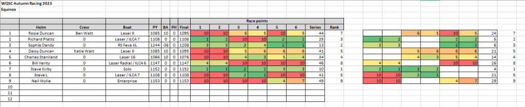 The final, Pursuit Race takes place next weekend 12th Nov – anyone not registered for racing so far can always join in the pursuit but please let Julie Platts wqsc.secretary@gmail.com know by lunchtime on Friday if you intend to take part, so we can calculate start times.