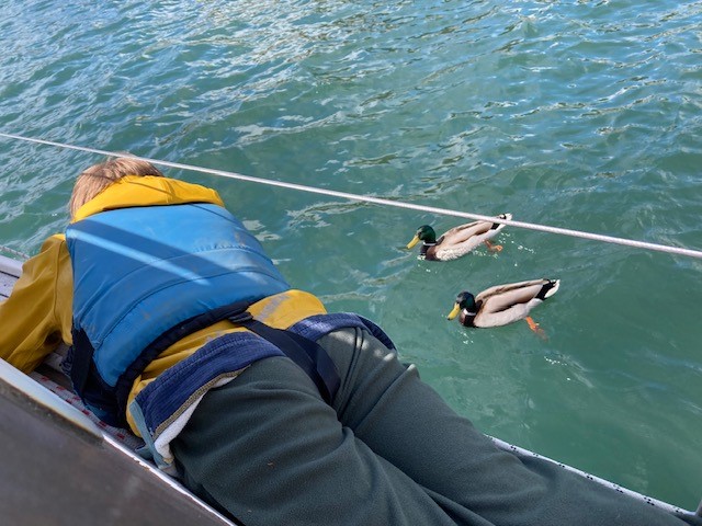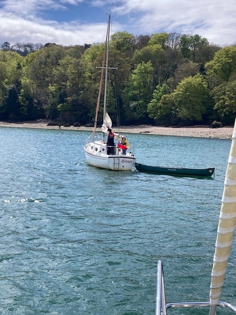 However, four boats left Weir Quay on the morning of the 27th in fair weather and were able to sail to the Sound in a gentle north-easterly breeze. Anna Catharina and Bronte decided to anchor for lunch in Barn Pool as their young crew needed refuelling. Father and daughter, Matt and Tilia