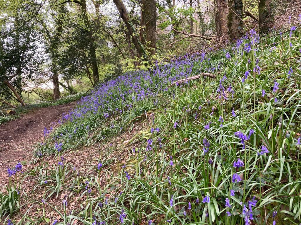 On Sunday morning there was a shore party to explore Court Woods and admire the bluebells , wild garlic and beautiful beech trees which cling to the river bank on the Newton side.