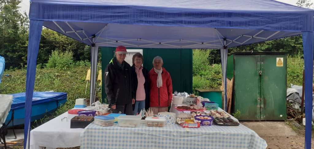 Our usual glorious riverside location for the event was abandoned in favour of shelter from wind and rain, with hasty boat park rearrangements and the loan of gazebos and an event shelter to create enough space.