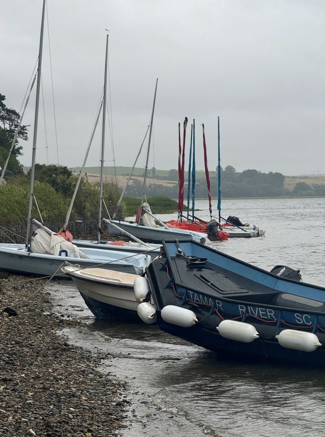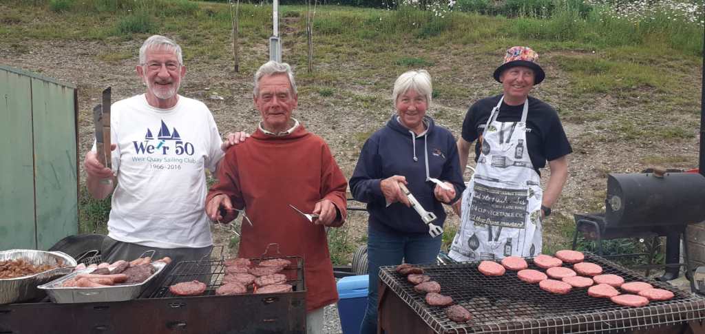After several days of glorious weather, it seemed particularly cruel that the only spell of rain for some time hit Weir Quay precisely at barbecue o’clock, but the ‘Big BBQ’ last Friday evening was still a huge success, and we welcomed nearly 100 visitors from the three downriver clubs – Saltash, Tamar River, and Cargreen.