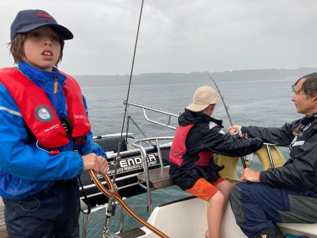 As the boats were about to head home, the heavens opened and we had a wet trip all the way back to Weir Quay. However, Anna Catherina entertained her guests with a spot of fishing to keep their spirits up!