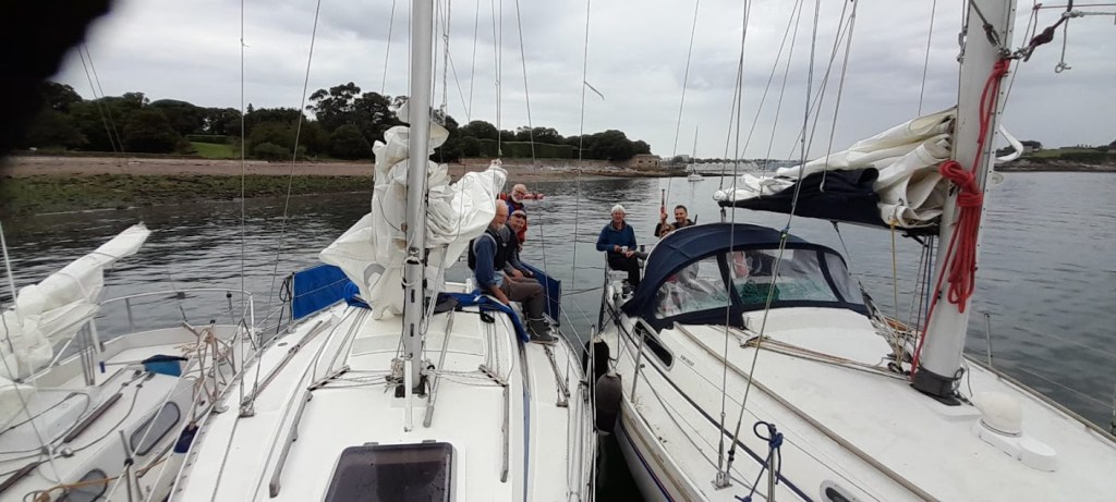 The other 6 cruisers had a gentle sail to Cawsand Bay, where the rolly conditions unfortunately prevented rafting but they were able to anchor close together.
