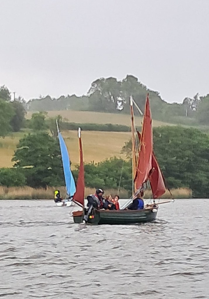 Then we encountered a heavy shower and Rob Larman in his “Pirate Ship” as he passed amongst the flotilla.