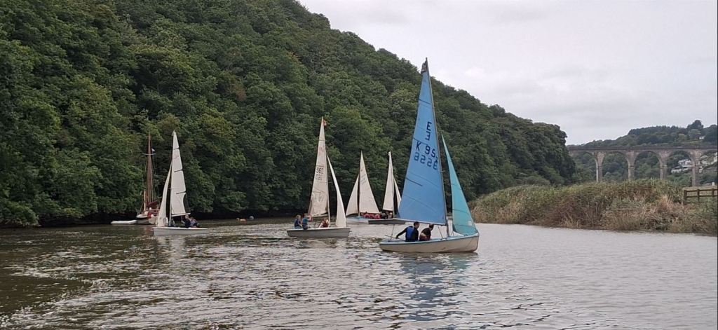Weeks of baking hot weather and the promise of more of the same – plus wind – sounded almost too good to be true for the dinghy sailors 2-night camp upriver at Cotehele. And that did indeed prove to be the case, with rain turning up for two out of three days as well as a spell of thunder and lightening thrown in for good measure! But that didn’t get in the way of a very good time had by all.