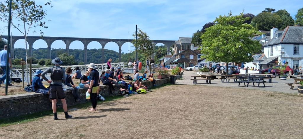 Alan, for supplying the pasties from Tavistock, and for making an emergency search for camping stove gas when my order didn’t arrive. We raise our mugs of tea to you! To everyone who chipped in with the massive amount of work in feeding 30 hungry mouths especially the BBQ ‘team’ – Alex, Martin, Tom, Isobel, Phil – who cooked the mountain of food with great efficiency. Martin, I will never wrap my BBQ bananas in foil again! And to all the preppers and servers: Judy, Julia, Michelle, Isobel – it was so wonderful to return from our upriver expedition, cold and wet with the extra jeopardy of thunder and lightning, to find ready-prepared hot drinks and snacks waiting for us.