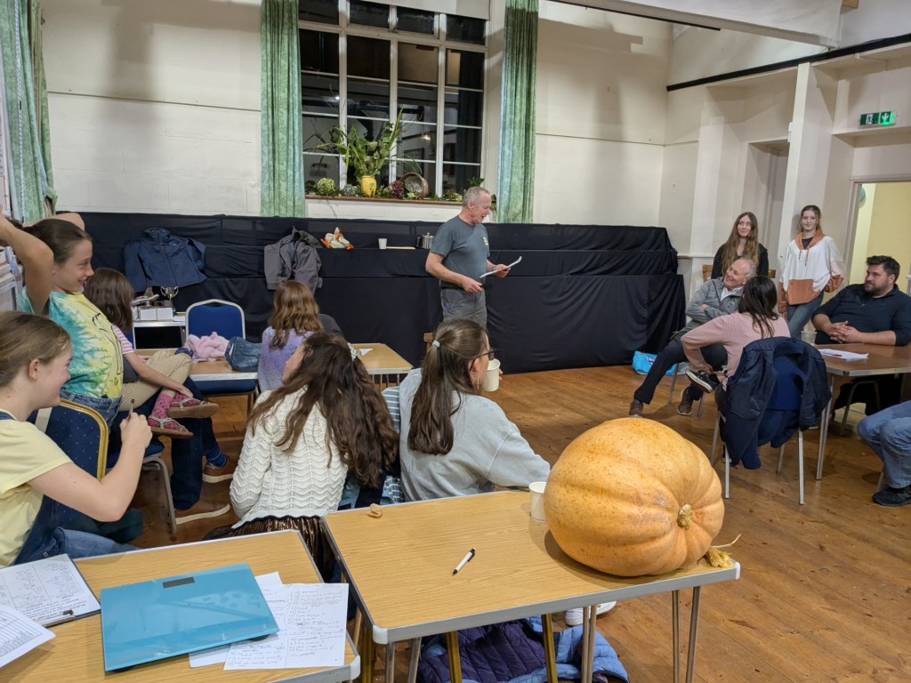 (2) Guessing the weight of the Pumpkin: shared winners Bennedict Hayden-Davies with Iris Scorer