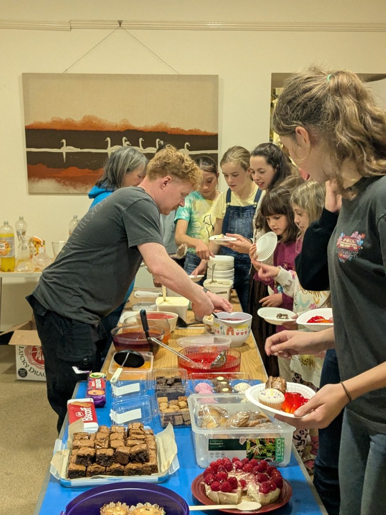 Then it was time to tuck-in to the wonderful selection of food on offer including pasties, salads, quiche and many other home-made delights followed by jelly and ice-cream (of course) plus a wide range of desserts, also brought by the participants.