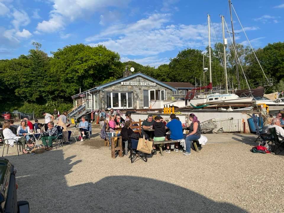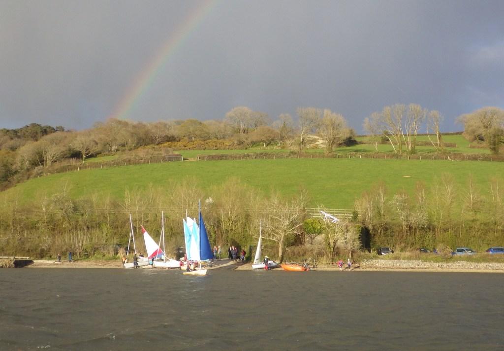 The WQSC and Cody SC dinghies pulled up on the beach at Drake’s Island. Afterwards, Cody joined many WQSC members at the evening BBQ at Weir Quay Boatyard.