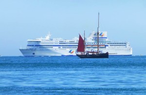 Brixham Trawler Pilgrim in front of the Ferry Pont Aven – Pat Moss