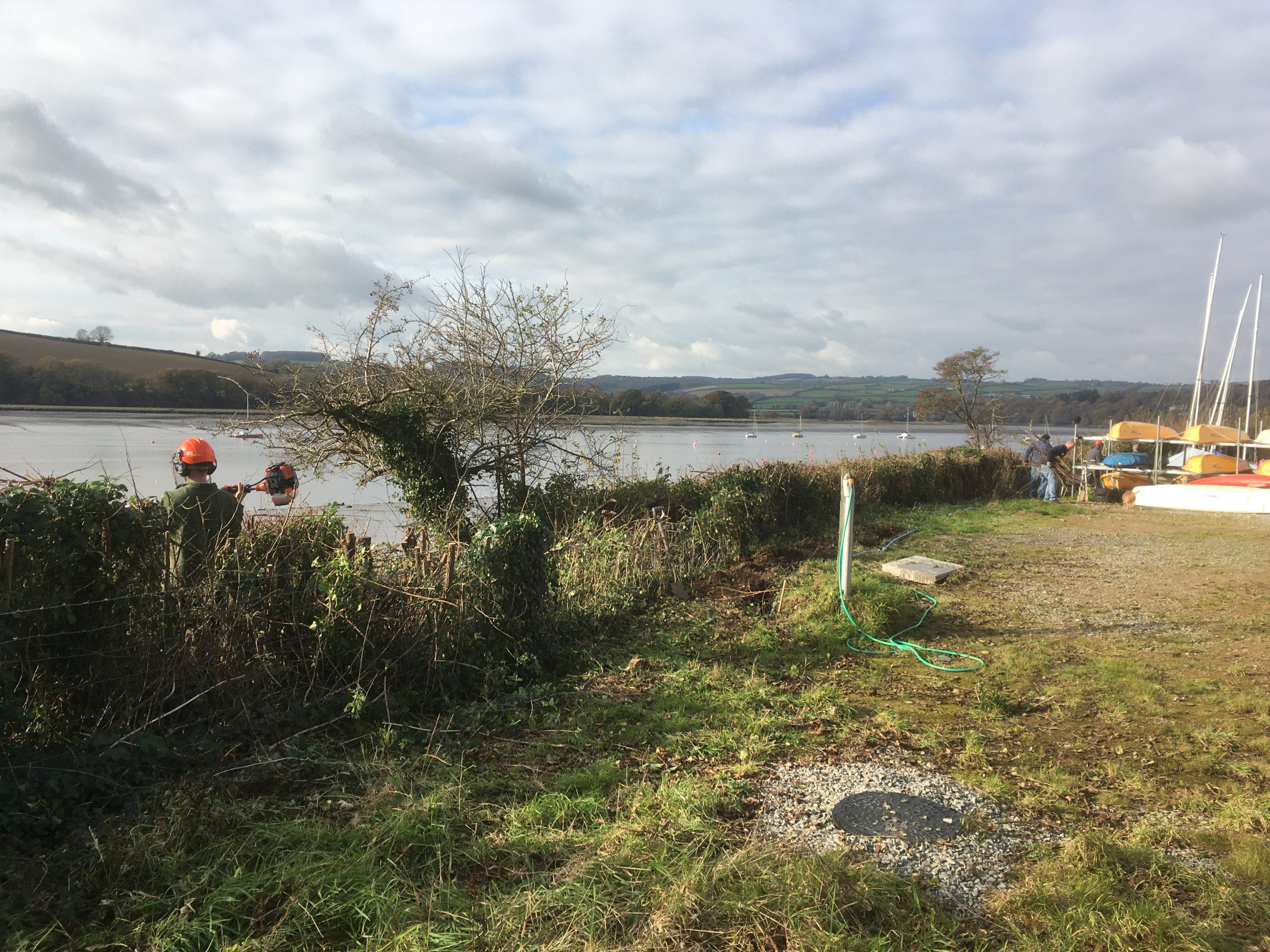 Saturday 16th November saw a large group of club members embark on the first working party of the winter. A team suitably armed with an impressive array of heavy duty garden tools, mainly concentrated on cutting back the hedge and small trees to open up the view of the river. The effect has been quite