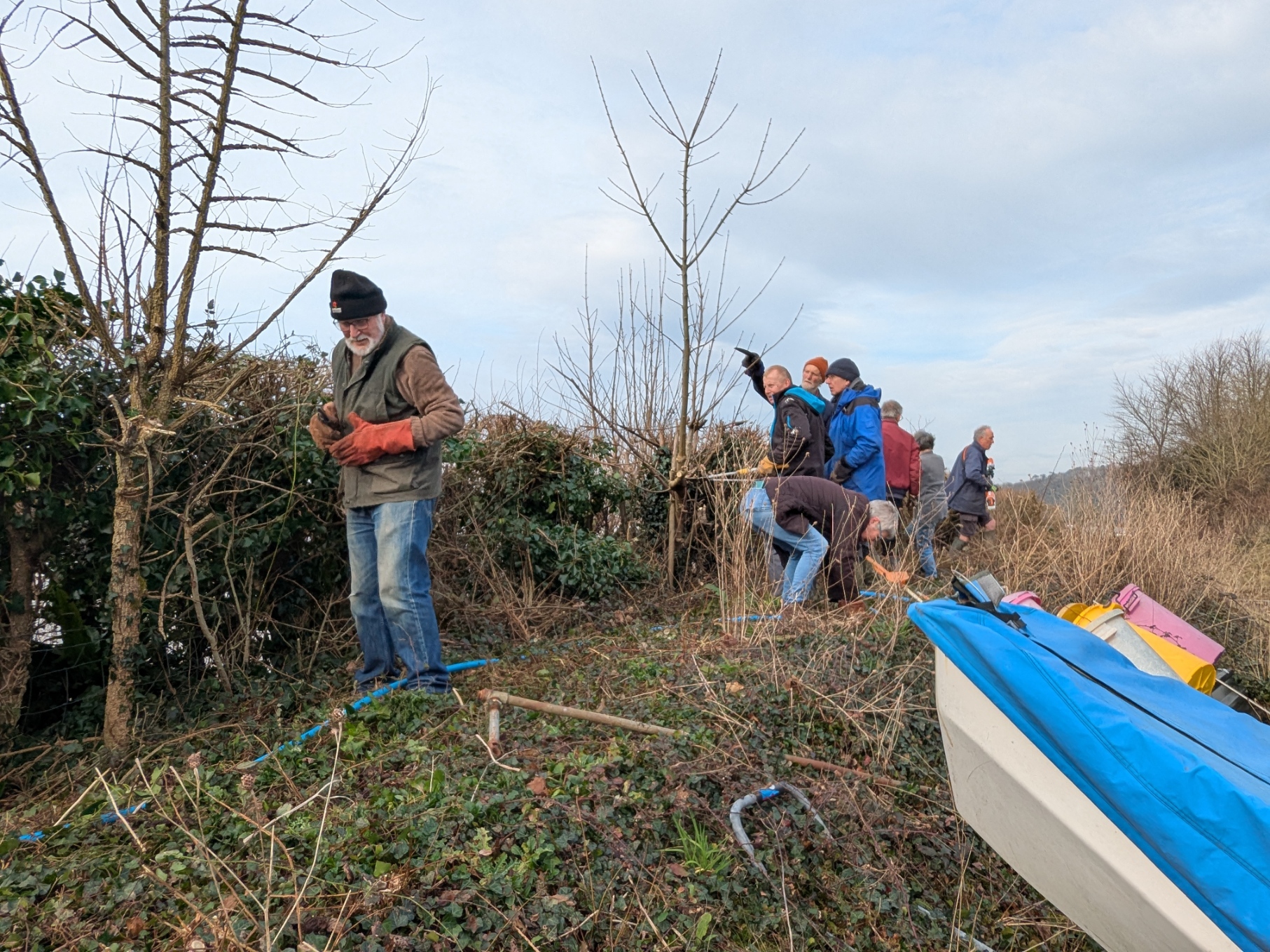 On Sunday 16th February, volunteers from the sailing club and the gig club came together in the morning to work on various tasks to tidy up the Hub Club site. They cut back the hedge along the side of the boat park. Two brave souls attacked the impressive brambles along the back of the site.