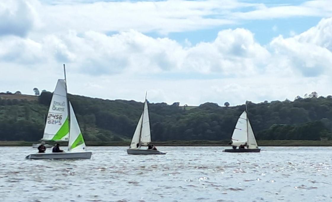 The Commodore’s Report on Yesterday’s Upriver Dinghy Trip If I was to say that, in spite of the forecast and anticipated winds on Sunday, the boats that set off upriver towards Cotehele were at times becalmed, you would find it hard to believe! Arriving at Weir Quay at 14:00, the winds could only be described as gentle – until we came to